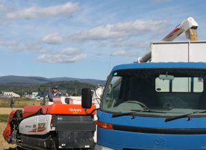 籾が貯まると運搬用のダンプへ |